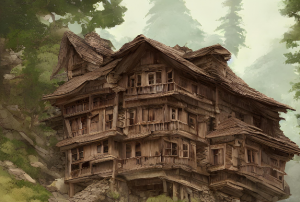 9、破旧的山上木屋,门口站着很多人