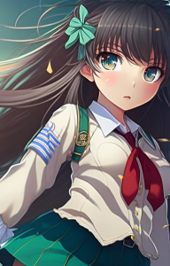 10、从Senran Kagura的可爱的动漫女孩,穿着与裙子的一件非常详细的校服,全身正面视图在行动画象,隐藏在后面的手,全身射击,五颜六色的头发,极其详细,华美的详细的眼睛,流动的头发,轮辋照明
